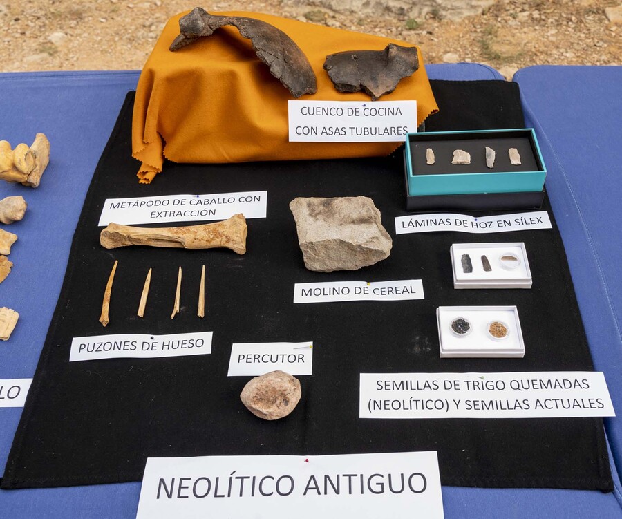 Dentro de la cultura material recuperada en los niveles neolíticos, datados alrededor de hace 7300 años, encontramos un área de actividad centrada en la realización de decenas de fuegos/hogares para, por ejemplo, el procesado de comida o el tratamiento térmico del sílex a la hora de tallarlo. Cabe destacar también la excavación de un suelo de arcilla cocida acondicionado para vivir y que por su antigüedad es uno de los primeros realizados con esta técnica: “pusieron debajo unas ramas, les prendieron fuego y sobre ellas fueron depositando la arcilla para estabilizar la zona”. Los animales consumidos son tanto domésticos (vaca, oveja) como salvajes, sobre todo caballos, lo que demuestra una explotación mixta de los recursos animales (ganadería y caza).