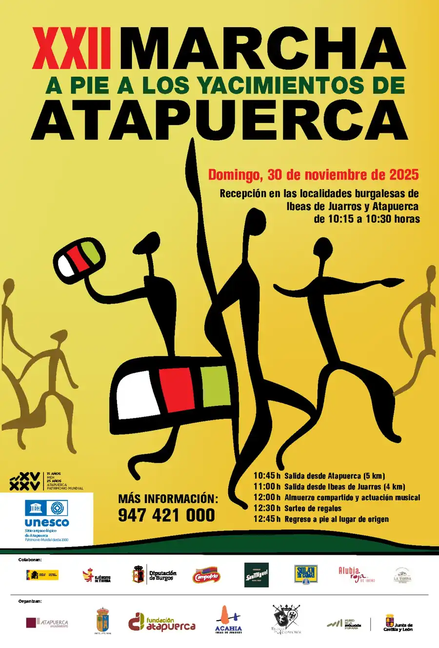 El próximo domingo, 30 de noviembre, se celebrará la XXII Marcha a pie a los yacimientos de la sierra de Atapuerca, con motivo del 25 º aniversario de su declaración como Patrimonio Mundial por la UNESCO.