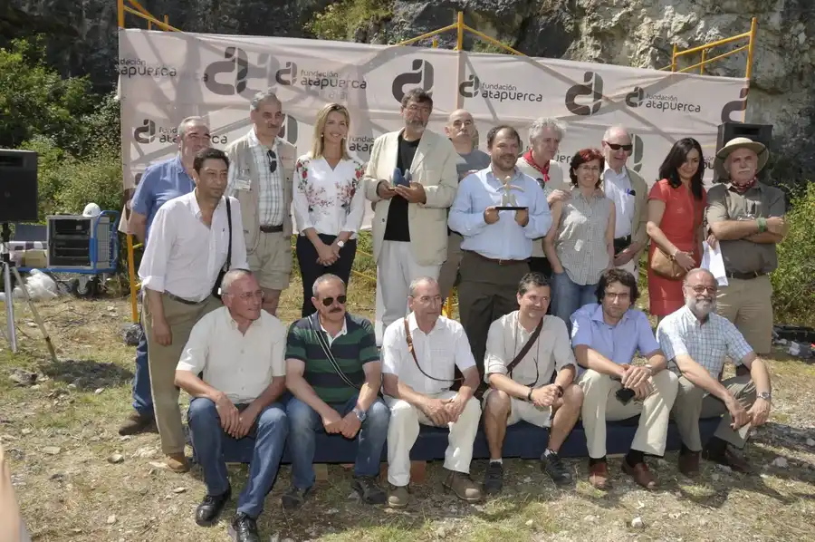 El pasado 12 de julio, el Prof. Dr. D. Trinidad de Torres y el Grupo Espeleológico Edelweiss recibían los "Premios Evolución" 2013 de la Fundación Atapuerca. El acto se ha celebrado en plena campaña de excavación, en compañía del Equipo de Investigación de Atapuerca, con sus codirectores Juan Luis Arsuaga, José María Bermúdez de Castro y Eudald Carbonell. También han estado presentes los patronos de la Fundación Atapuerca y un gran número de simpatizantes del Proyecto Atapuerca.