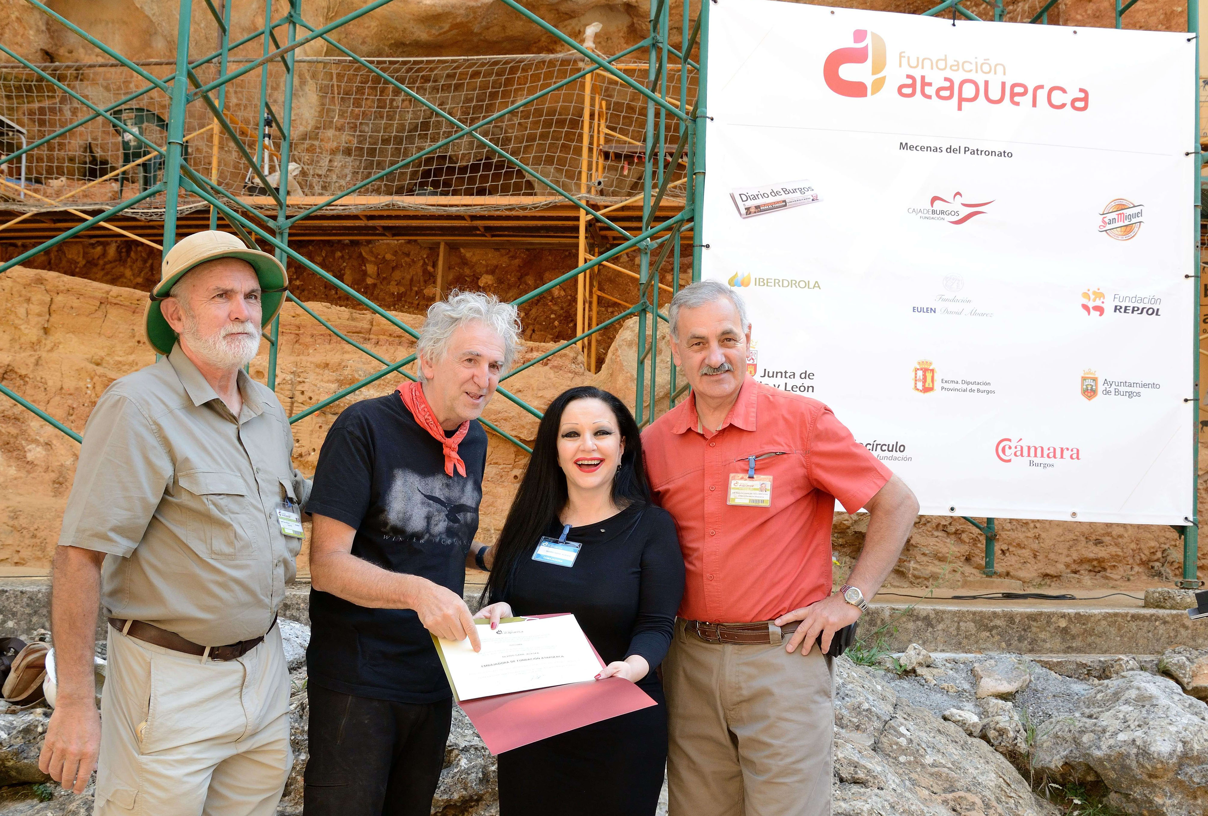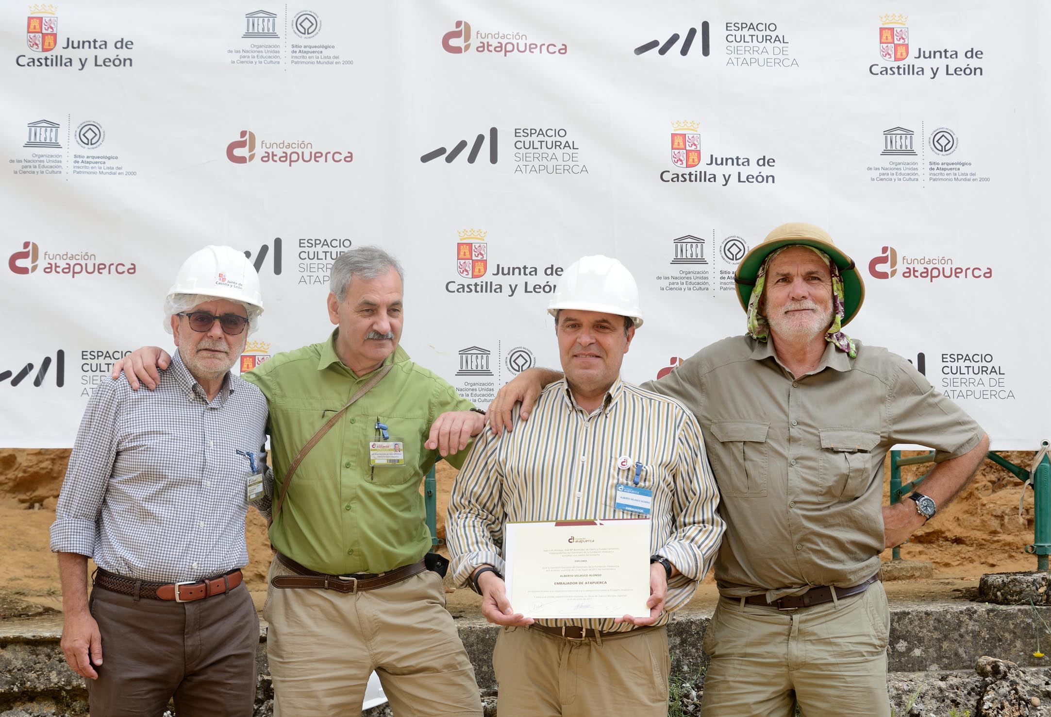 Durante la campaña de excavaciones 2017, frente al yacimiento de Galería, Juan Luis Arsuaga, José María Bermúdez de Castro y Eudald Carbonell, vicepresidentes de la Fundación y codirectores de las excavaciones de Atapuerca, han hecho entrega a los cuatro Embajadores de un diploma acreditativo de su nombramiento, de una tarjeta de acreditación y de una insignia. Además, les han agradecido en nombre de la Fundación y del Equipo de Investigación de Atapuerca su compromiso, con el que respaldan el Proyecto Atapuerca. Los nuevos Embajadores de la Fundación Atapuerca han podido visitar los yacimientos donde excavan cerca de 280 investigadores durante mes y medio.