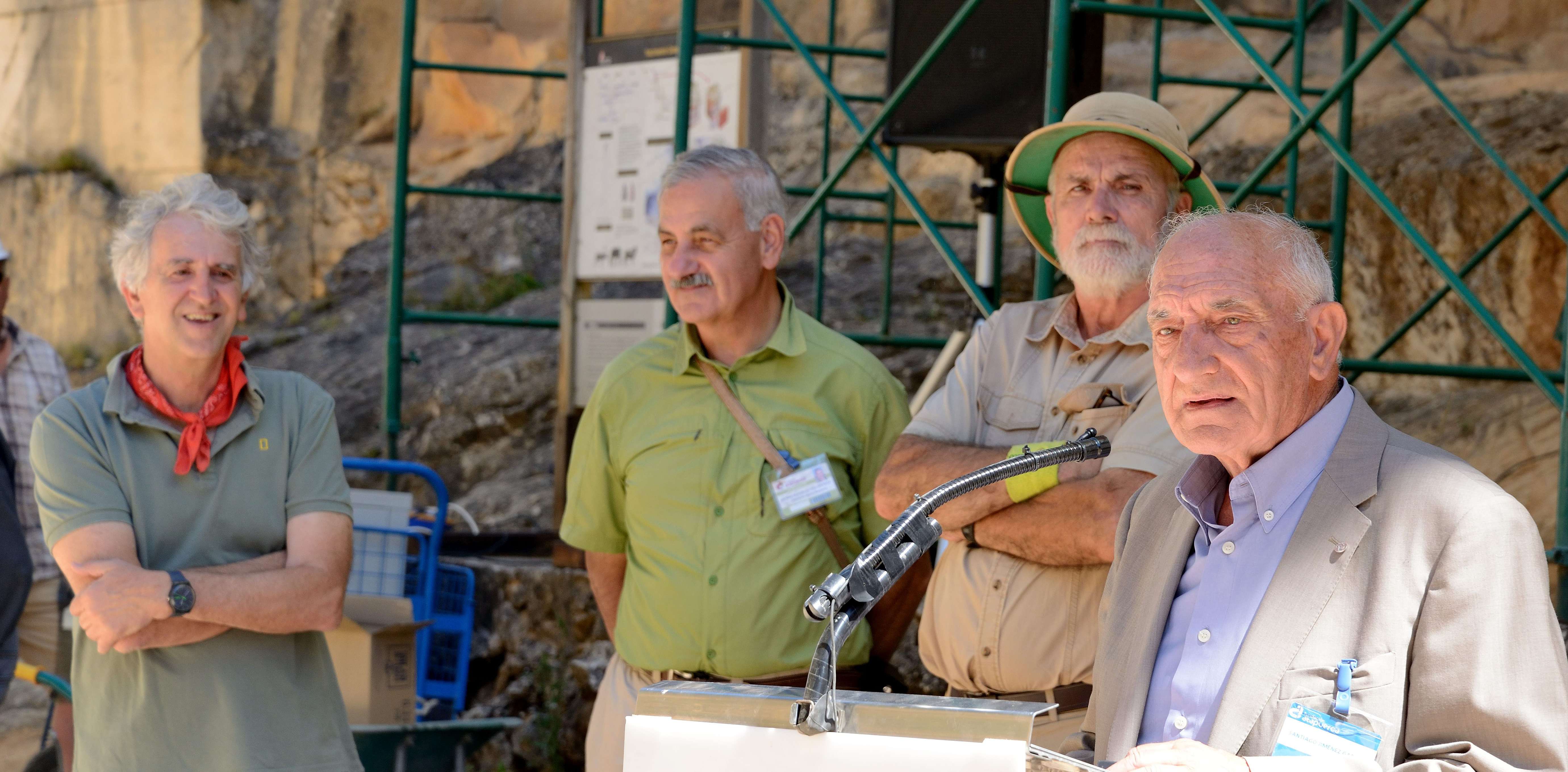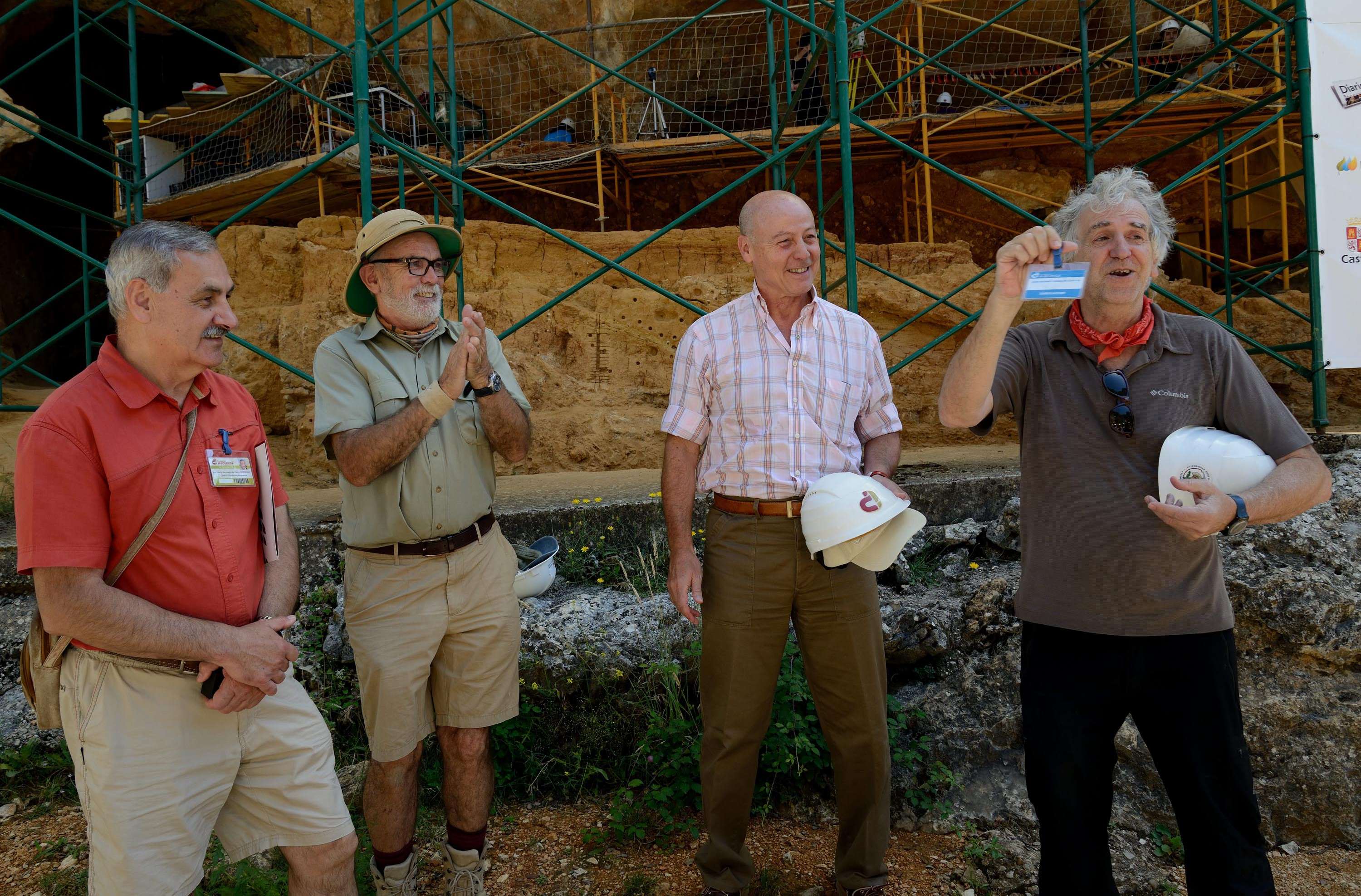 Juan Antonio Corbalán con los tres codirectores de Atapuerca. Foto: Susana Santamaría/Fundación Atapuerca